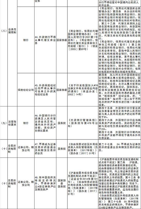 以下為《中國(guó)(上海)自貿(mào)試驗(yàn)區(qū)金融服務(wù)業(yè)對(duì)外開放負(fù)面清單指引(2017年版)》全文: